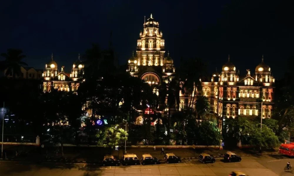 See The Brihanmumbai Municipal Corporation (BMC) headquarters, located in Mumbai, India, is an impressive colonial-era building that takes on a captivating appearance when illuminated in the evening. The building's ornate architectural details, including its Gothic Revival and Indo-Saracenic elements, are beautifully highlighted by soft, strategically placed lighting. As the sun sets, warm and subtle lights bring out the intricate carvings, arched windows, and ornamental motifs on the facade. The overall effect is one of elegance and grandeur, with the building standing as a shining symbol of Mumbai's civic administration and historical significance amidst the city's bustling urban landscape.